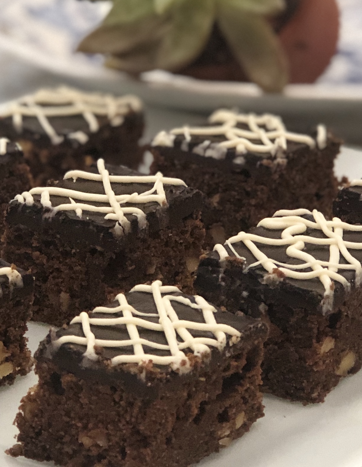 The hallmark of a good brownie is its fudge like texture. For this fudgy texture, slightly under-bake the brownie till the toothpick comes out not completely clean but with slight crumbs on it. You could also substitute walnuts with hazelnuts and the chocolate frosting with Nutella.