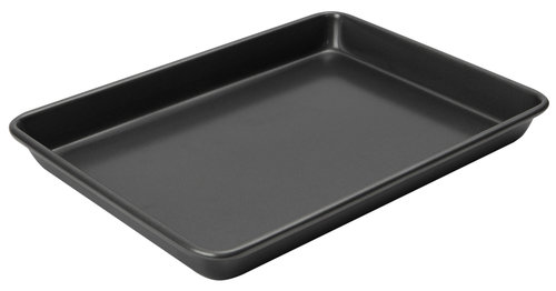 This is a metal pan with small sides and is used to bake swiss roll cakes or sheet cakes. - Loaf tins