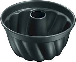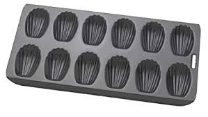Also called the tube pan, it is a metal one with tube in the centre and is typically used to bake angel cake, bundt cake or European cake known as Kugelhupf. It is also ring shaped but is very ornate in the bottom with ridges and flutes. So when you un-mould the cake and invert it, it looks decorative. - Madeleine trays