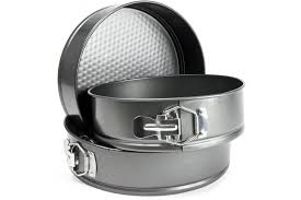 As the name suggests, the base of this bakeware is loose. These come only in round and square shapes and mostly in aluminium, anodised or steel material. As they are loose bottom, the baked good can be very easily un-moulded. They have to be used carefully as there is a chance of the batter leaking. - Springform tins