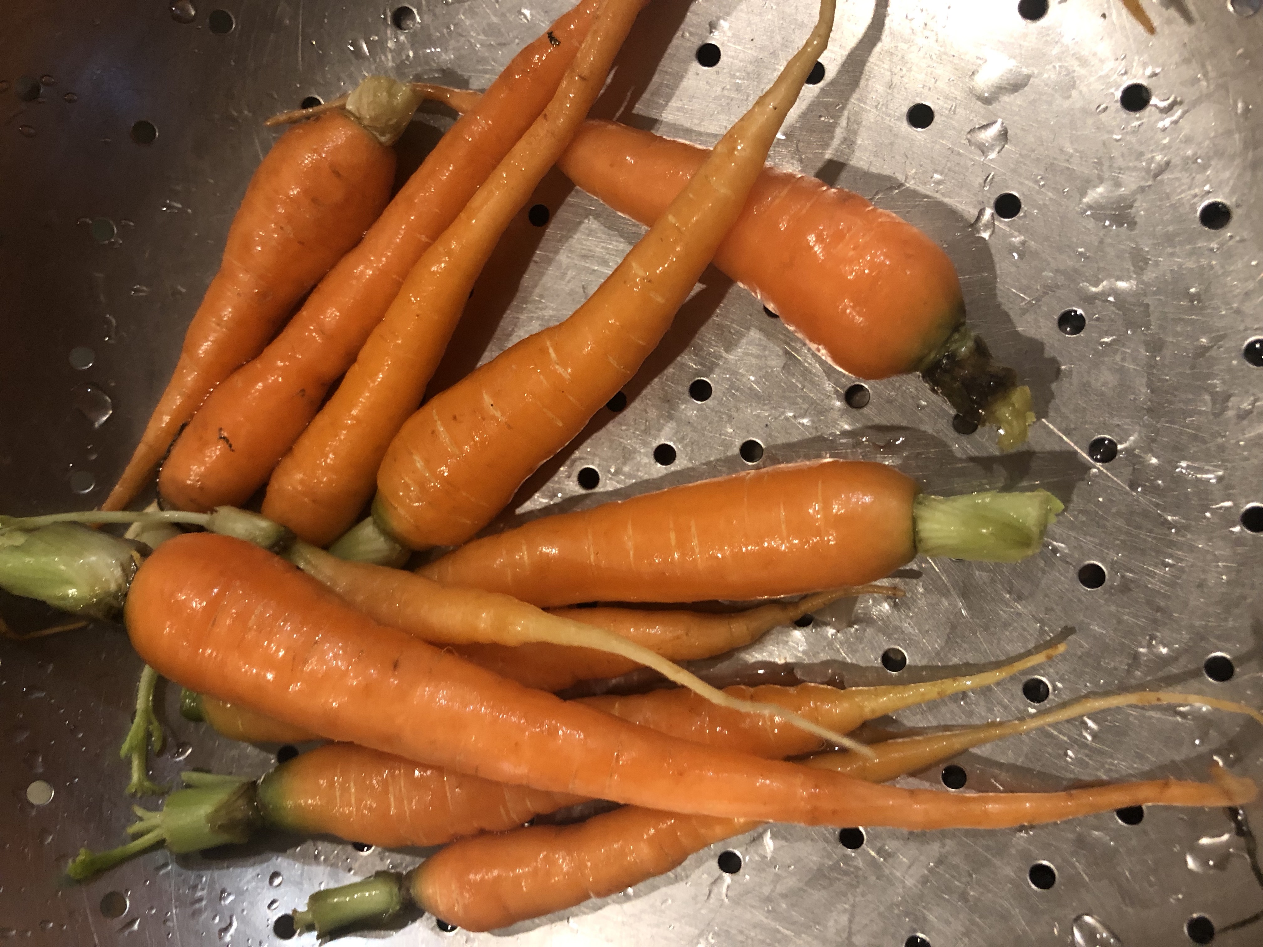 Last morning was no different. But this time one peculiar thing caught my eye. In one of the stalls, along with the exotic regular veggies ( sounds such an oxymoron isnβt it?)Β like broccoli, bell peppers, salad greens etc, from the basket popped out vibrant orange baby carrots with bright green tops! Carrots are very easily available, but baby carrots are very rarely available in Pune, unless they grow on your farm. They looked irresistible and I had to pick them up! Here is a side dish I came up with.