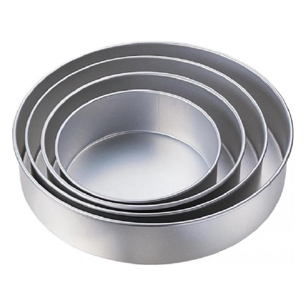 The shaped tins are mostly aluminium ones or silicone ones. The square and rounds are available in aluminium, steel, anodised aluminium, silicone, ceramic or oven proof glass. - Loose Bottom Cake tins