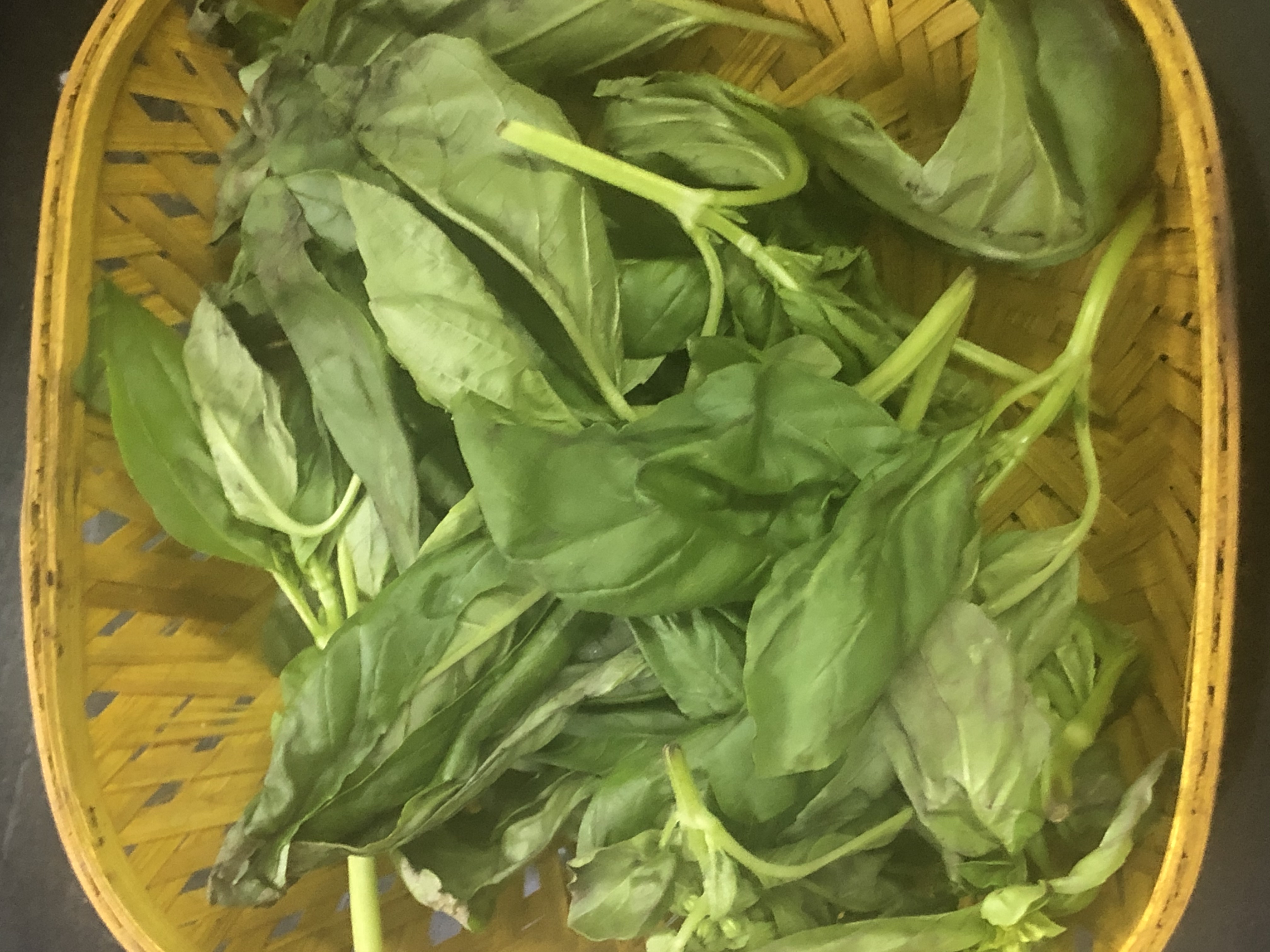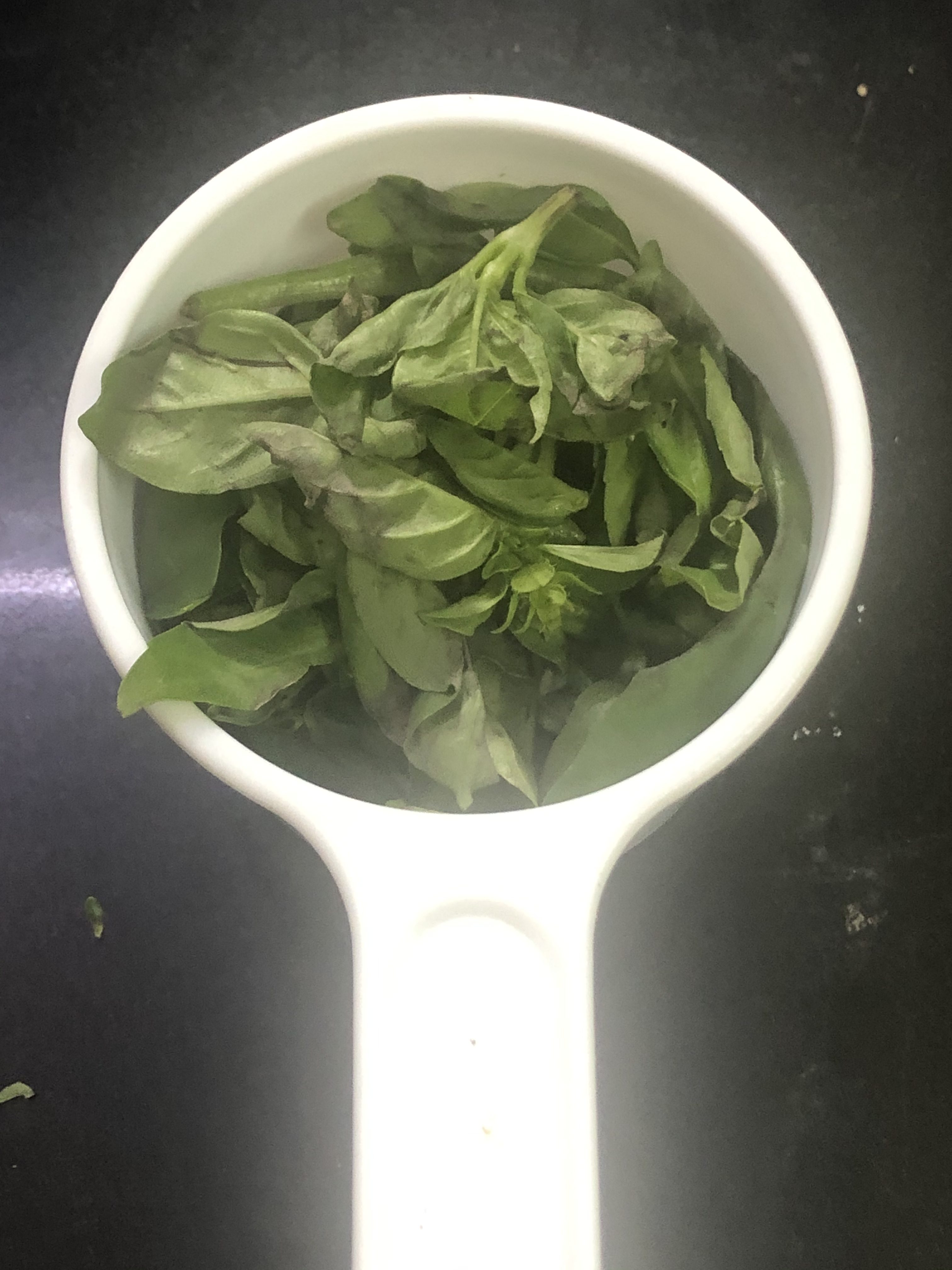 - Pluck the leaves only. In a mixer, pulse together the basil and salt till it resembles green salt like. At this point do not over grind as it can turn into a wet pulp.
